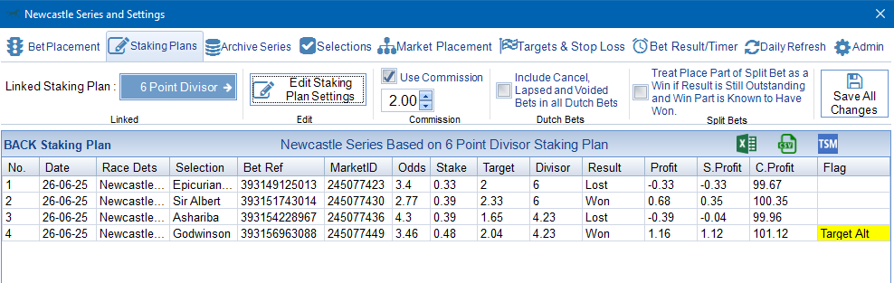 Every time the series target is hit then the flag 'Target' is shown in the flag column. TBM counts this as bespoke target hit.