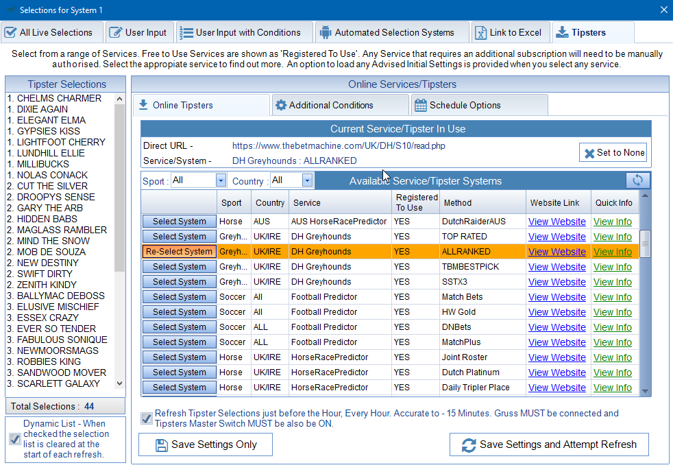 Sporting Inspector – This is a subscription based website that allows users to access selections systems only available to Sporting Inspector and automate the selections. UK/IRE Horse Racing Selections.