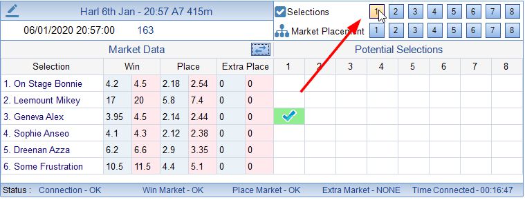 Additional Help on Selecting Selections from the Market Data/Potential Selections can be found on the website How Do I ? series - https://www.thebetmachine.com/how-do-manually-select/