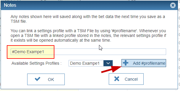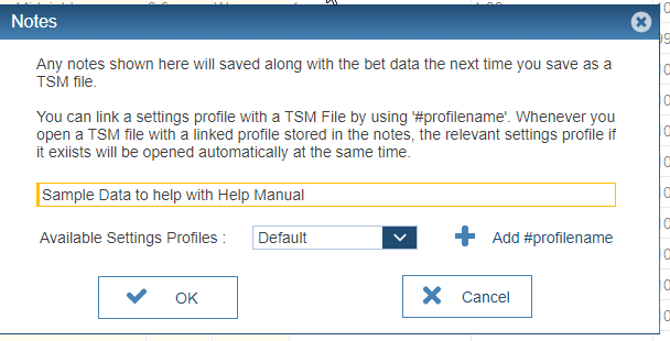 In the screenshot below I have cleared the notes and linked this TSM file to a Profile called Demo Example1. This profile will now automatically be loaded when this TSM file is first loaded.